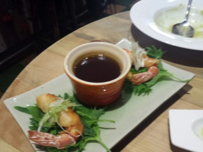 Restaurante situado en el barrio de las letras de Madrid, zona de Huertas, con mucho ambiente en las calles de alrededor, se caracteriza por una carta moderna donde mezcla un estilo mediterraneo-oriental. La mezcla de productos y especias hacen de los platos presentados un bocado muy apetitoso y fresco. Comimos en las mesas altas de fuera, ya que hay lista de espera para comer en mesa convencional. Maridamos los platos con vinos y cervezas, aconsejado en todo momento por la maitre, que nos indico buenas referencias.