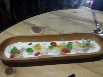Restaurante situado en el barrio de las letras de Madrid, zona de Huertas, con mucho ambiente en las calles de alrededor, se caracteriza por una carta moderna donde mezcla un estilo mediterraneo-oriental. La mezcla de productos y especias hacen de los platos presentados un bocado muy apetitoso y fresco. Comimos en las mesas altas de fuera, ya que hay lista de espera para comer en mesa convencional. Maridamos los platos con vinos y cervezas, aconsejado en todo momento por la maitre, que nos indico buenas referencias.